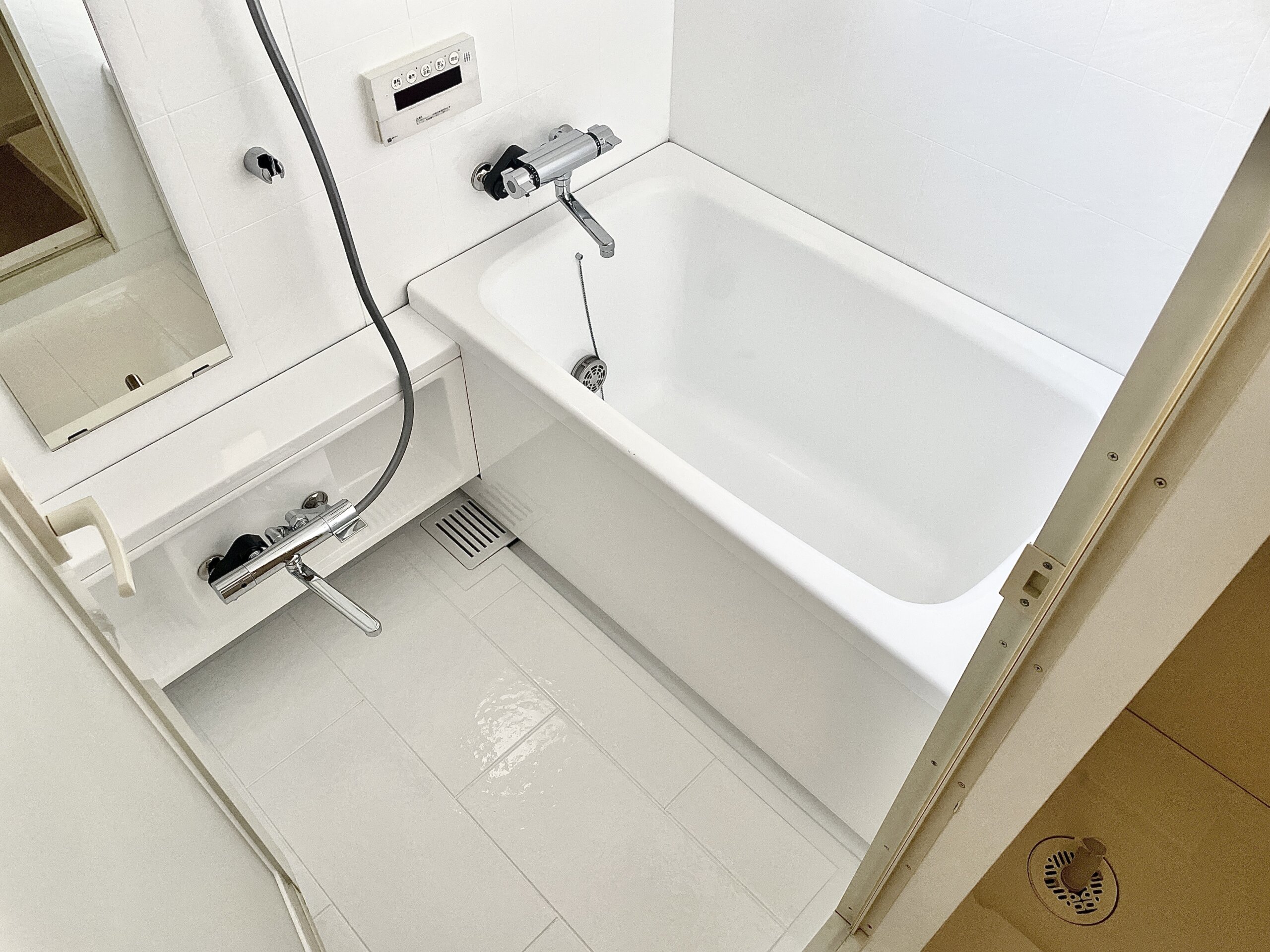 施工事例No.308|法人オーナー様の所有物件で、退去後の状態が悪く、原状回復に費用がかかる状態だった。デザイナーズのような雰囲気のため、グッドルームリノベーション「TOMOS」の特徴である無垢床との相性が良いのではないかとご期待。過去にもリノベーションのご依頼を頂いており、リーシングまでセットで可能という点にメリットを感じていただいてた。ファミリー層をターゲットに、子どもを見守りやすい開放的なリビングダイニングへの間取り変更や、玄関の拡大を行う。階段にも手を加え、統一感のある内装にして賃料アップを目指す。浴室は設備交換や塗装を行いつつ、ユニットバスは既存活用して施工費にメリハリをつけたリノベーションを実施。結果、賃料7.5万円アップで入居申込みを獲得!