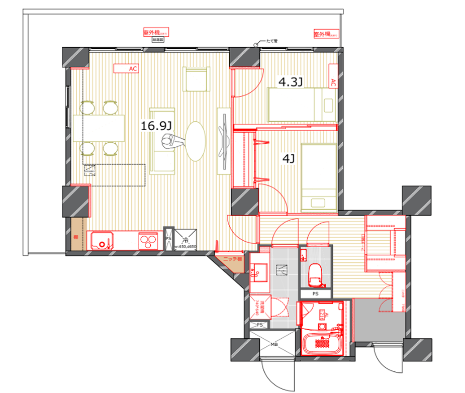 間取り変更をし、広々とした16.9畳のリビングを実現。