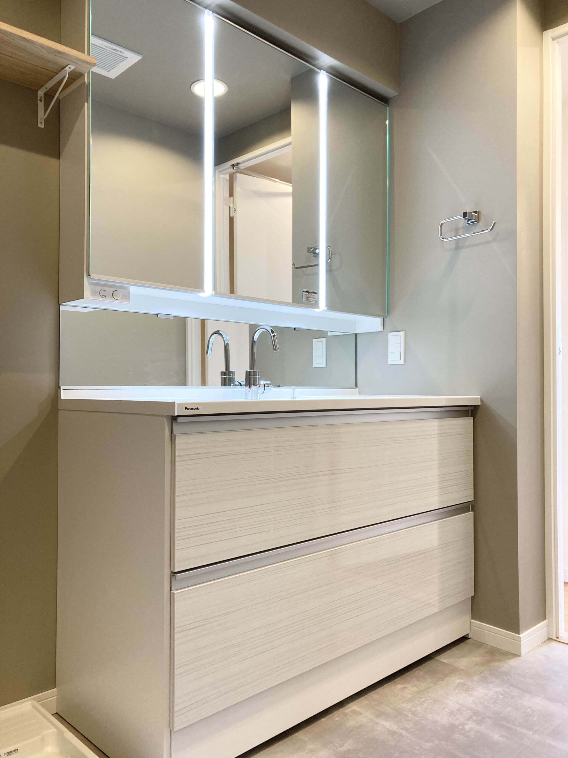 130㎝の洗面台に変更。収納スペースも問題ありません。