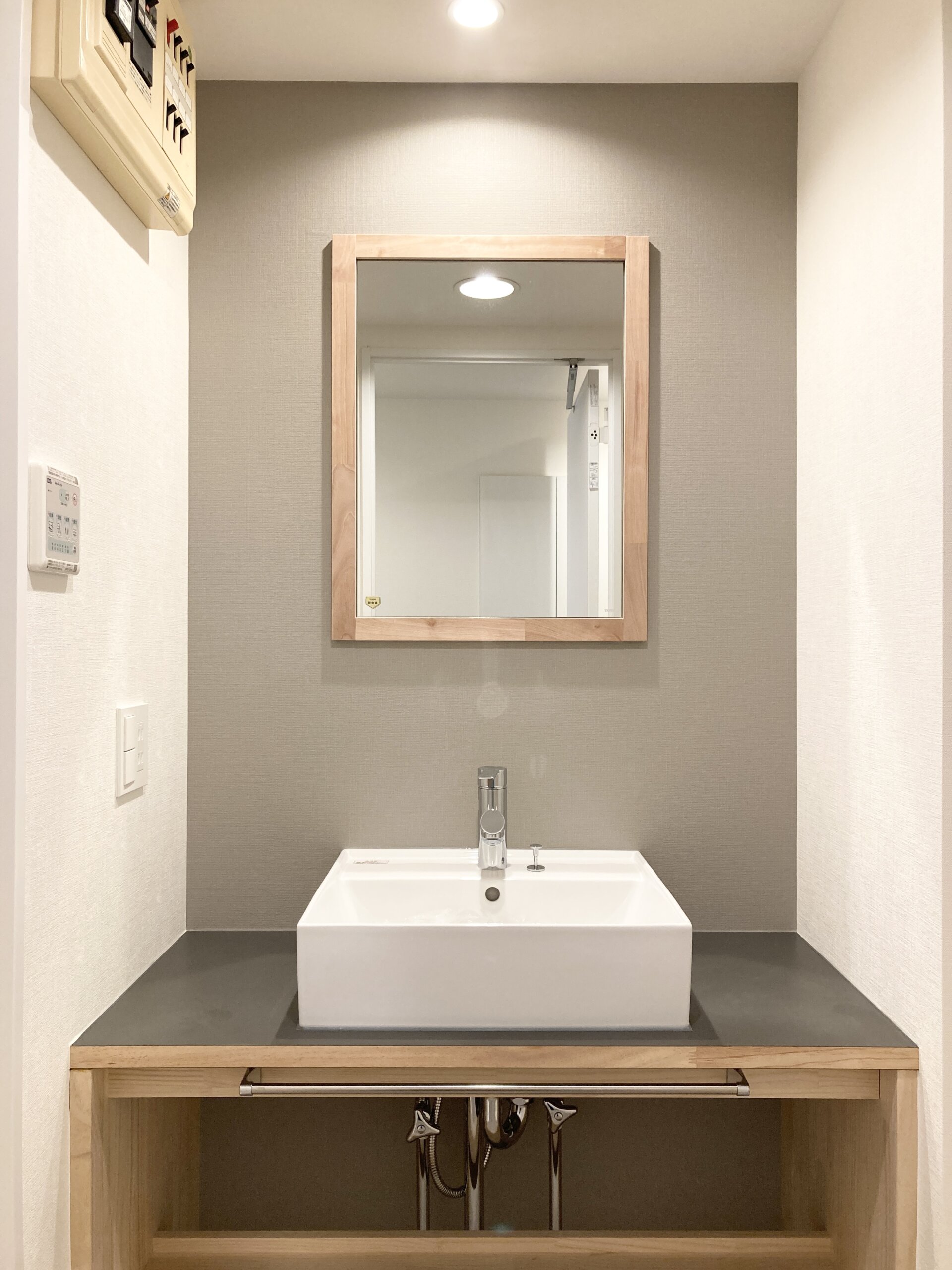 デザイン性が人気のTOMOSの造作洗面台を設置しました。